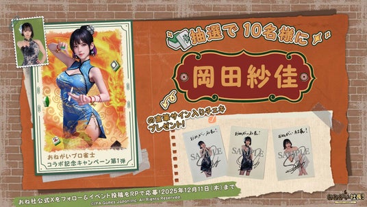 この度、スマートフォン向けゲーム「おねがい社長!」は、プロ雀士の「岡田紗佳」、「伊達朱里紗」、「瀬戸麻衣」の3名とのコラボレーションを、2025年11月29日(土)から12月25日(木)までの期間限定で開催することを発表いたします。