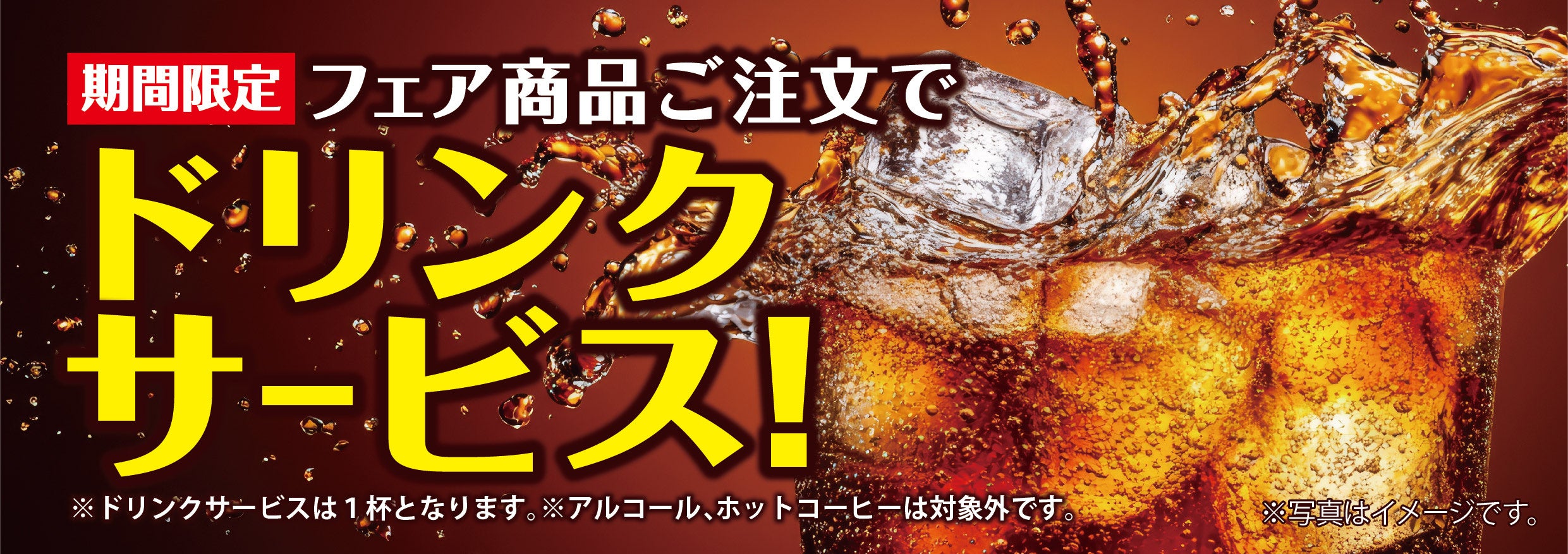 ※一部店舗ではソフトドリンク1杯無料キャンペーンを実施しておりません。