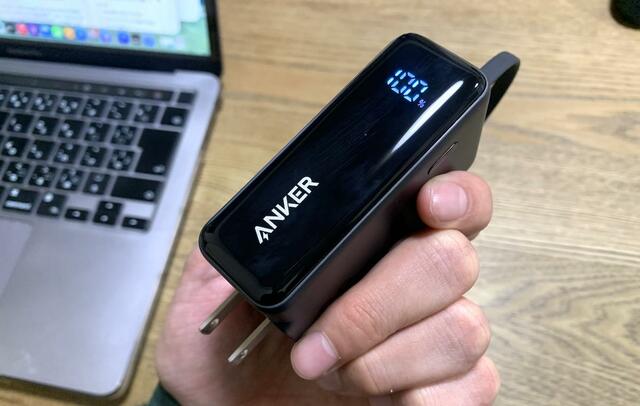 本体にコンセントとUSB-Cケーブルがついていて、出先で充電器としても使えるというのが大事です。