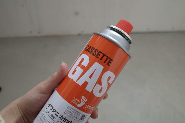 セット内容にカセットボンベは含まれていないので、別途用意が必要! 今回は自宅にあった「イワタニカセットガス(オレンジ)」を使ってみました。