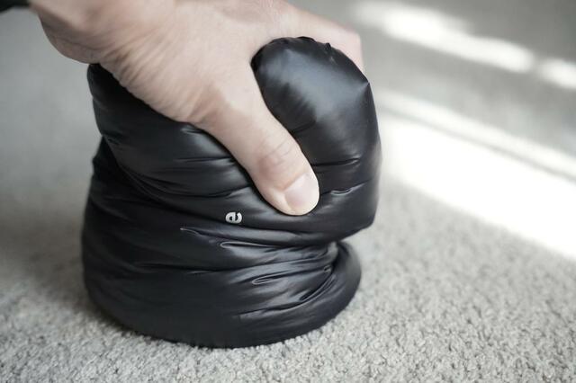 ユニクロのウルトラライトダウンのように、専用の収納袋が付いているので、使わないときはコンパクトに収納できます。