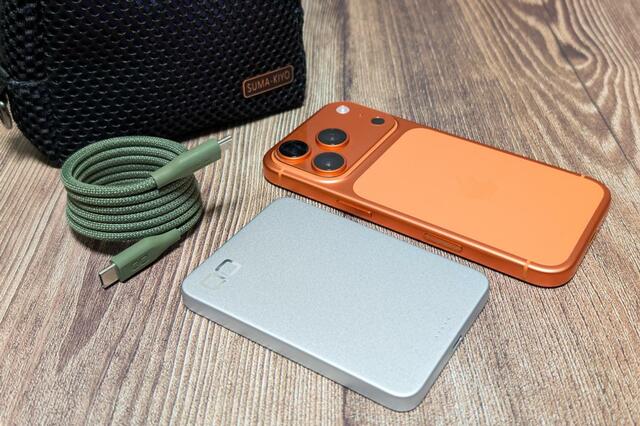 それでいて容量は5,000mAhあり、iPhone 17なら約1回分、iPhone 17 Pro Maxでも約0.75回分の充電が可能。