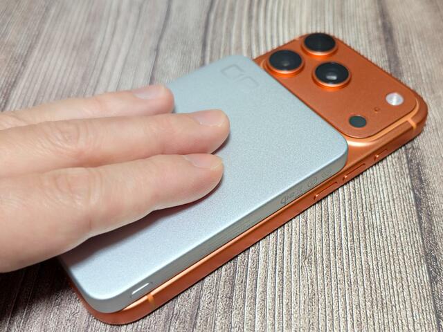 しかも、ワイヤレス充電規格「Qi2(最大15W)」に対応しているため、iPhone 12以降のモデルであれば背面にマグネットでピタッと吸着し、ケーブルなしで充電が可能。