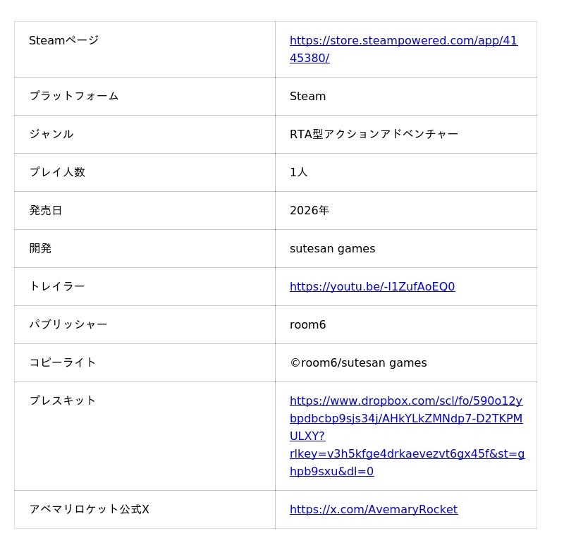 株式会社room6(本社:京都市左京区、代表取締役:木村征史、以下、room6)は、RTA型アクションアドベンチャー『アベマリロケット - Captain Patchwork -』(以下、『アベマリロケット』)を発表いたします。