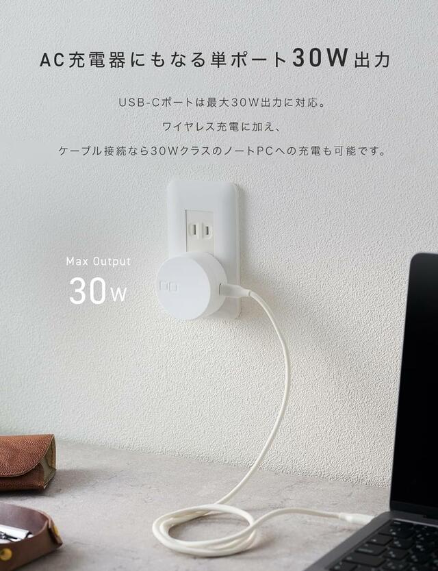 type-Cポートも搭載しているので、スマホをワイヤレス充電しながら他のデバイスを充電することも可能です。