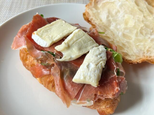 【Atelier Y】 カマンベール、スペイン産浜ハム、、ベビーリーフをはさんだクロワッサンサンド