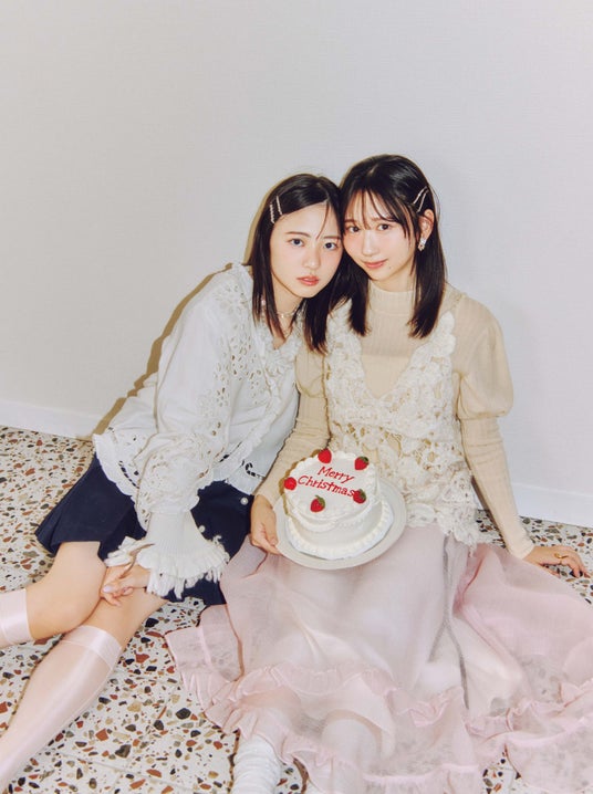 「私自身クリスマスが大好きなので、今回のテーマがうれしかったですし、同期の正源司と一緒にケーキを食べたり、本当にパーティみたいな空気感で撮影を行えたのが幸せでした。初めて出させていただいたファッション誌が『bis』さんだったので、本当にうれしい思い出でいっぱいです。今回やっていただいた束感前髪も普段やることがないので、ミーグリとかで取り入れていきたいと思いましたし、これからもファッションを楽しみたいなって思います」(藤嶌果歩)