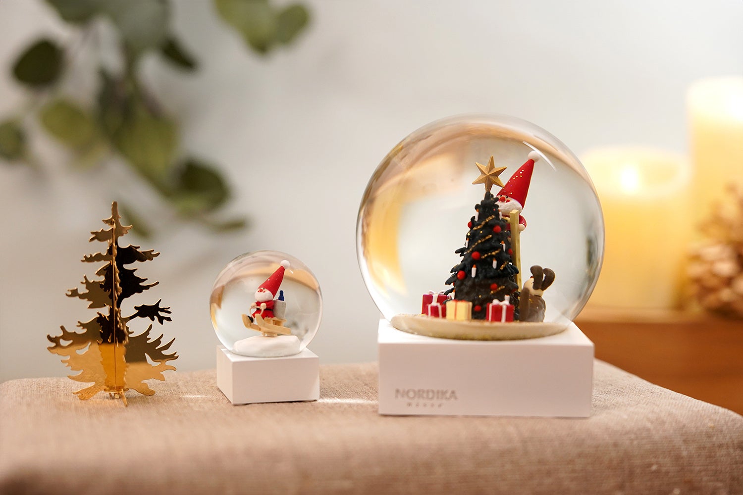 ノルディカニッセの魅力が詰まった、特別なスノードームの第二弾が登場。世界最高峰のクオリティを 誇る CoolSnowGlobes(R)とのコラボレーションです。2025年の新作にはミニサイズも加わり2種類の展開。ひとつひとつ手作業で色付けされたノルディカニッセは、細かな表情まで忠実に再現。ゆっくりキラキラ舞い落ちる光の粒が、幻想的な世界を演出します。
