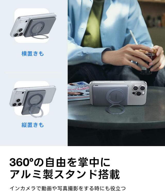 スタンド機能付きのモバイルバッテリーは、スマホを使いながら充電したいときに便利ですが、「スタンド付きだと重そうだし、かさばりそう」というイメージを持っている人も多いと思います。