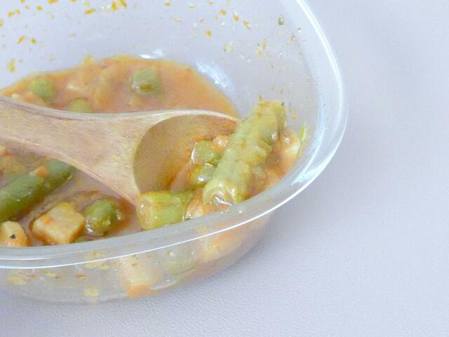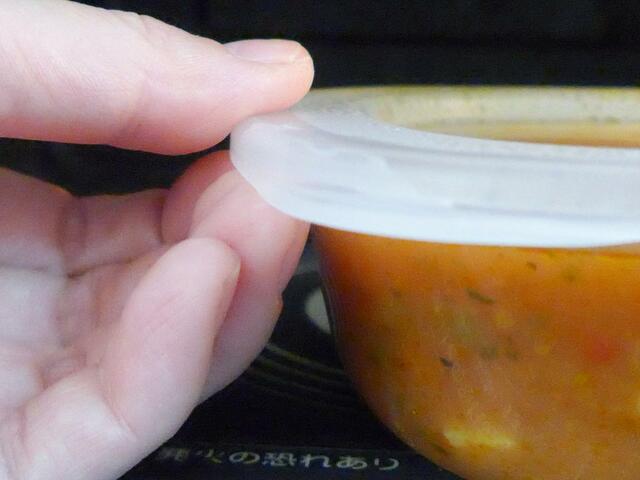ミネストローネの残りを冷蔵庫から取り出して、そのままレンジへ。