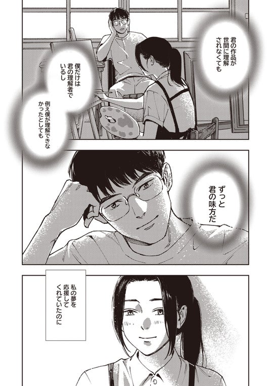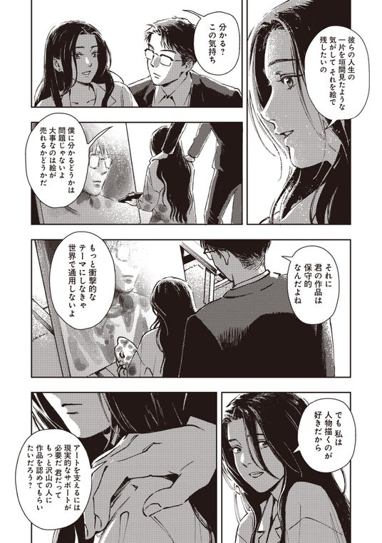 女性を相手に仕事をし、恋愛経験が豊富なヒューに翻弄されるイブイ。それでも「ヒューの絵を描きたい」という一心で、彼と交流を深める中、イブイは自分自身を見つめ直すようになる。そしてヒューもまた、イブイとの出会いで自分の生き方について考え始める──。