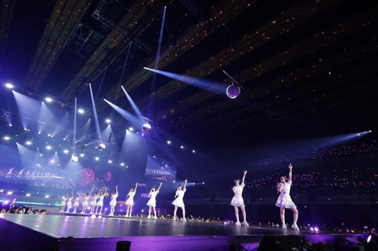 その後も先輩グループのカバーを盛り込みつつ、華やかな“空の旅”を経て南の島へ着いた≒JOY。彼女たちは『ブルーハワイレモン』などのサマーチューンを連発して会場をさわやかな空気で満たし、ラストスパートでは『体育館ディスコ』『初恋シンデレラ』などの鉄板曲を畳みかけた。そして小澤が「メンバーみんなで試行錯誤して、挑戦できたツアーだったんじゃないかなと思います!」とツアーを振り返り、今後の活動への意気込みを述べたあとは『ネバギバ!生きろ』のパフォーマンスへ。ファンに宛てたメッセージが映し出されるスクリーンを背に、メンバーは晴れやかな歌声を響かせた。