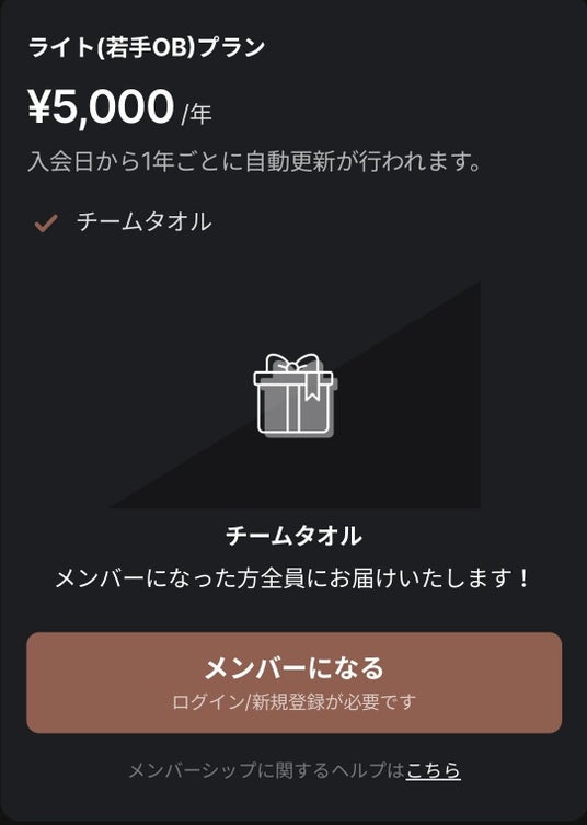 メンバーシップ機能からファンクラブ会員になって頂くと、チームから特別なグッズをお届けします!