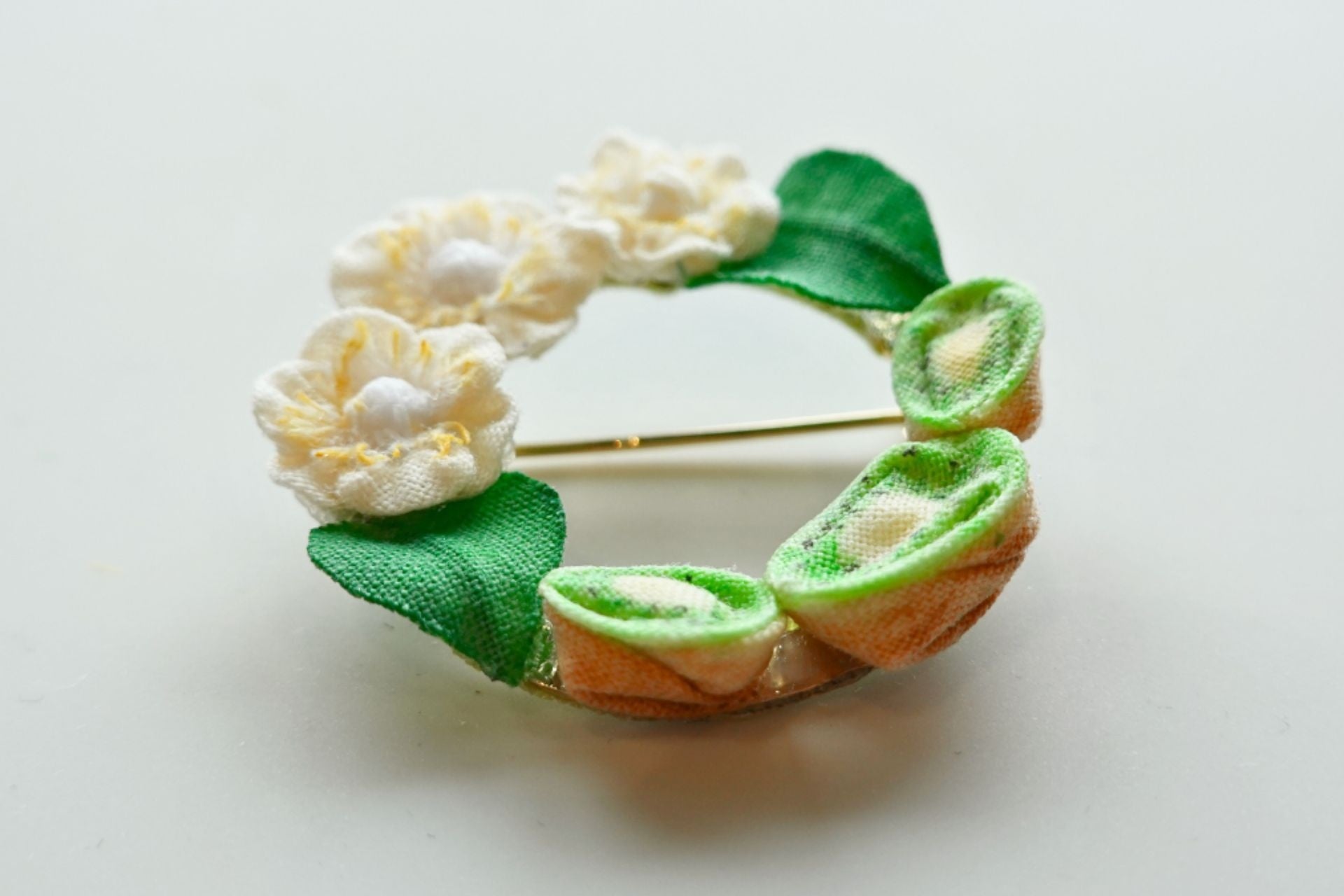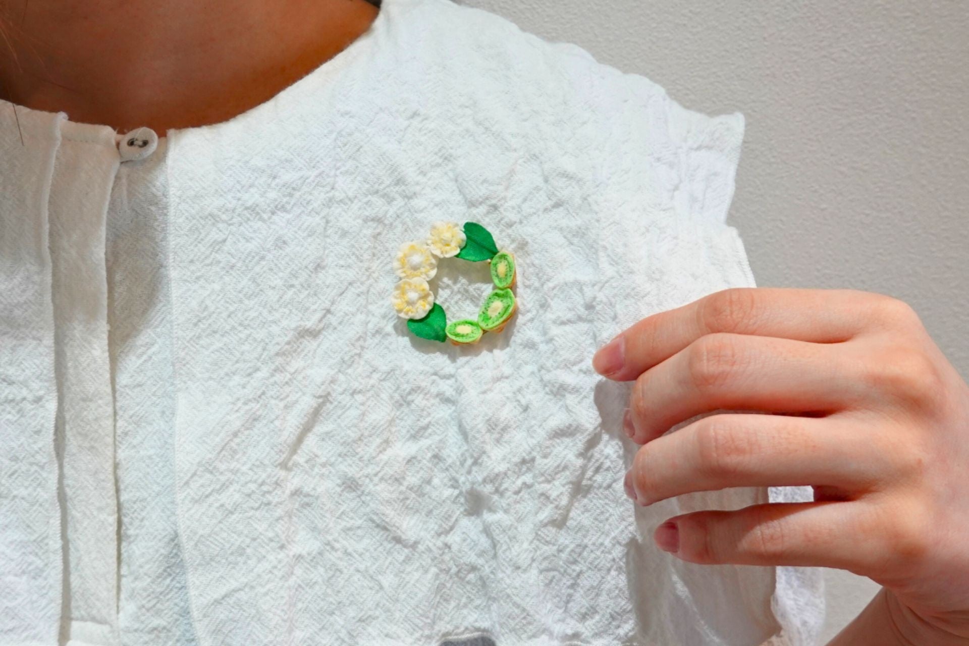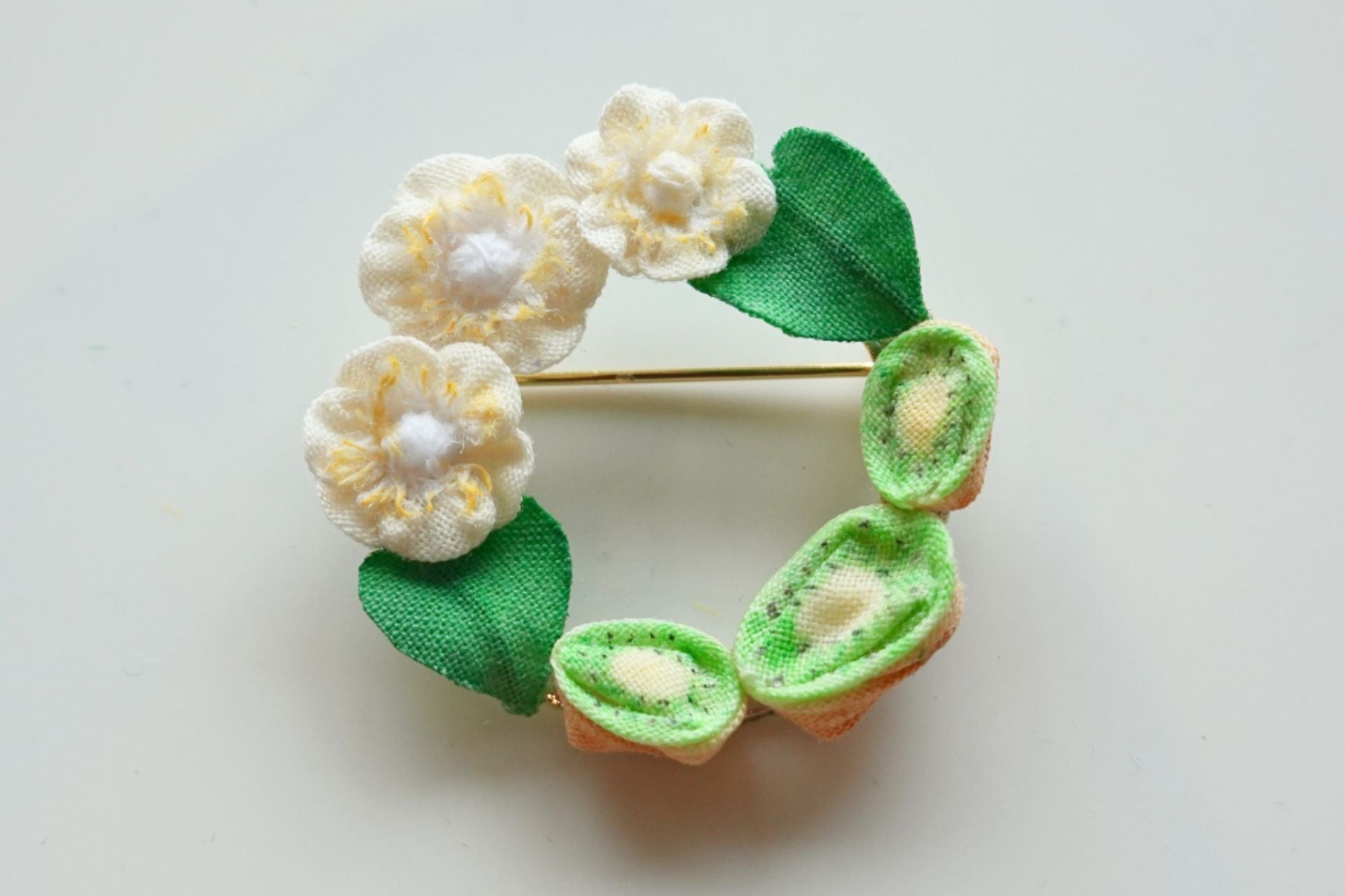 返礼品名:岐阜県関市産「ほらどキウイ」モチーフ 伝統工芸つまみ細工のブローチ