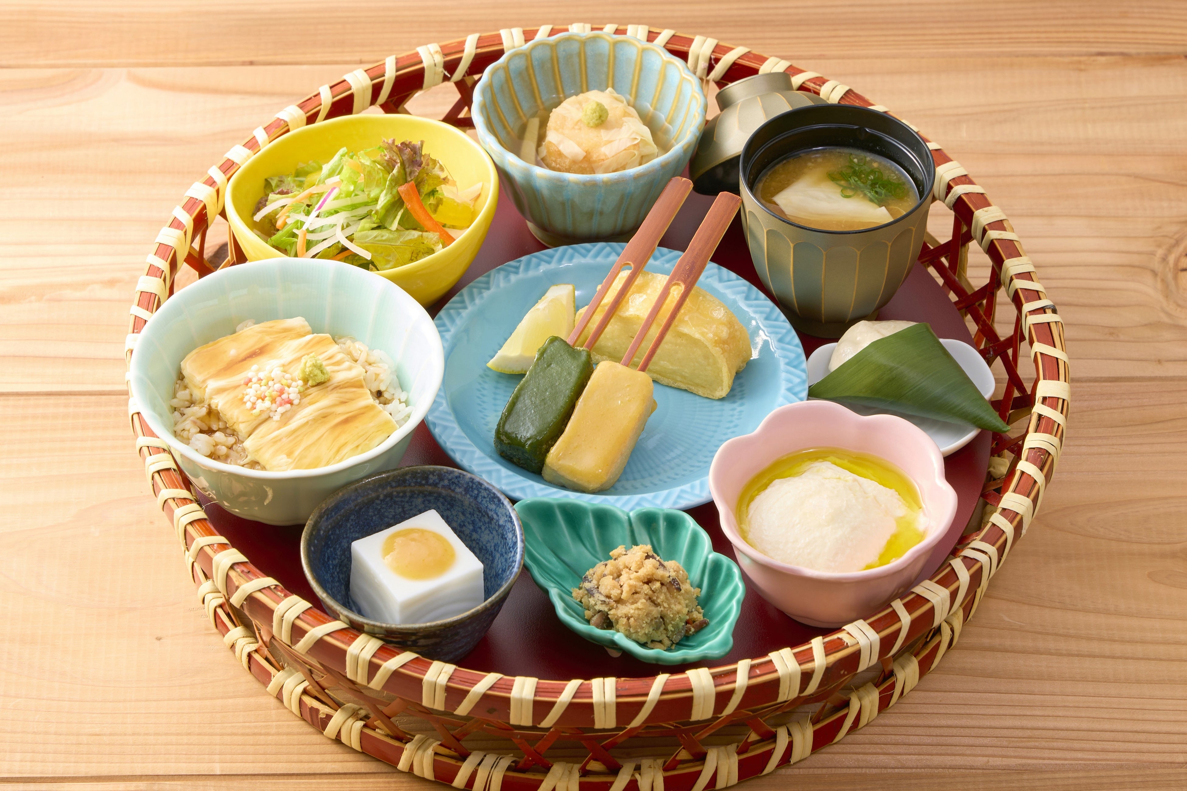 手作り豆腐、湯葉揚げ、生麩田楽、蓮根まんじゅう、湯葉丼など、人気メニューを一度に味わえます 。