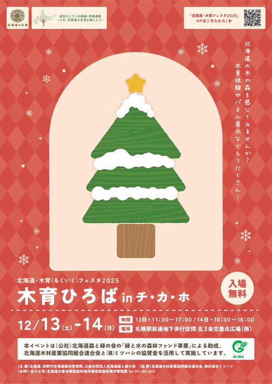 令和7年12月13日(土)~14日(日)に、札幌駅前通地下歩行空間(チカホ)で、「木育ひろば in チ・カ・ホ」を開催します!