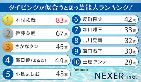 株式会社NEXER・ダイビングが似合うと思う芸能人に関する調査