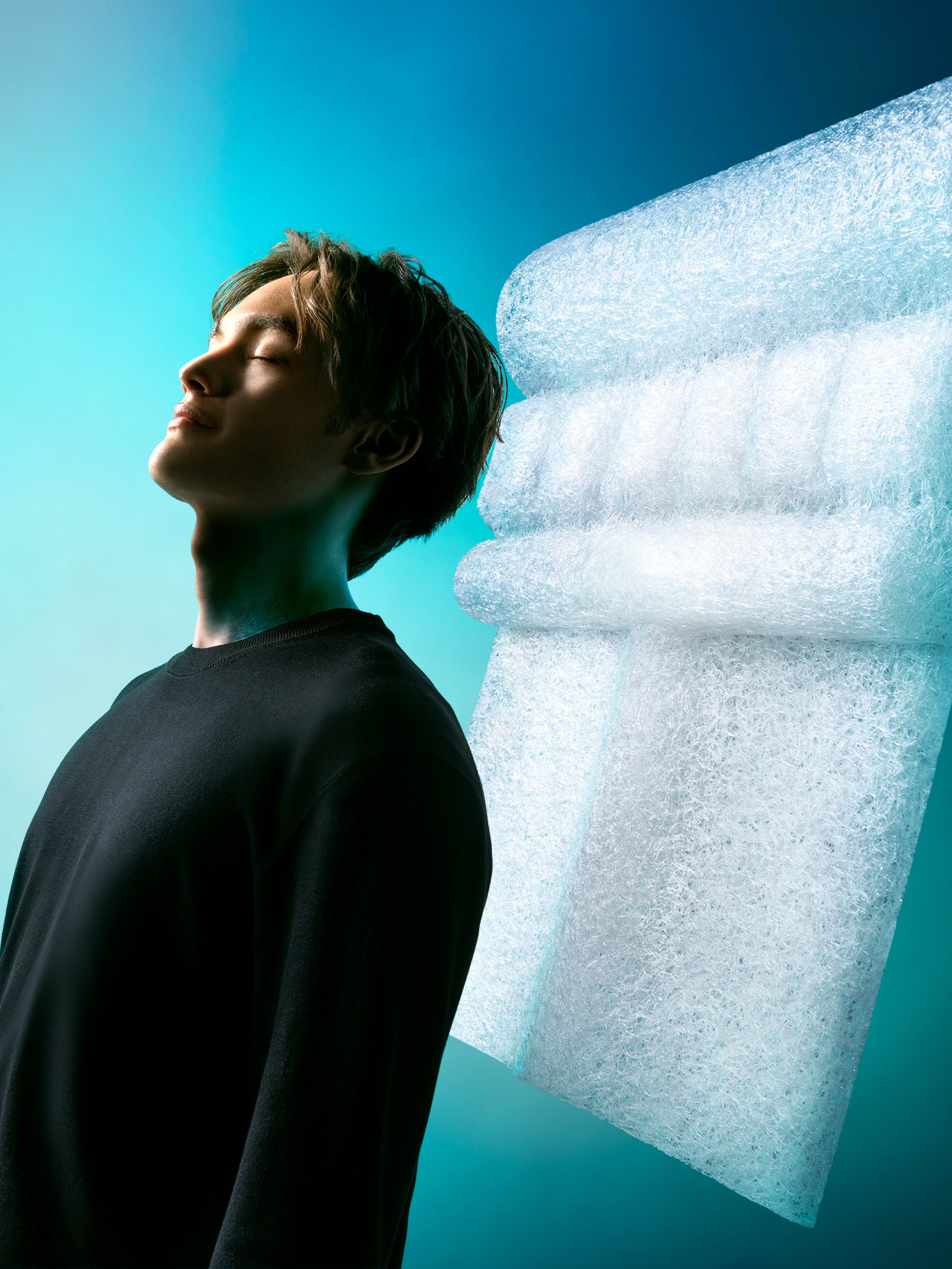 素材の約90%が空気層で構成され、睡眠中の熱や湿気を効率的に放出。 最適な温湿度を保ち、深い眠りをサポートします。