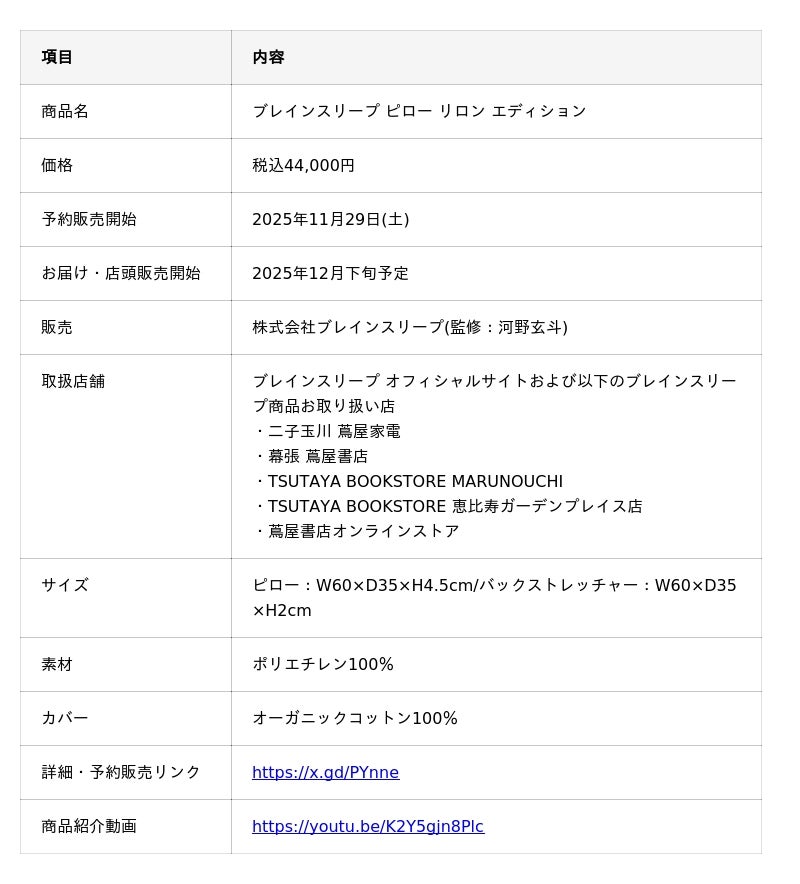 2025年11月29日(土)よりブレインスリープ オフィシャルサイトにて予約販売を開始しています。