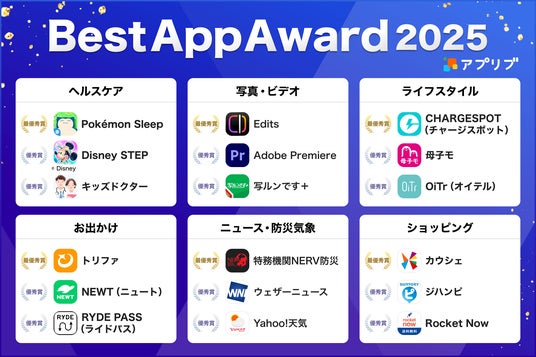 ナイル株式会社(本社:東京都品川区、 代表取締役社長:高橋飛翔、 以下ナイル)が運営するスマートフォンユーザー向けアプリ紹介メディア「アプリブ」は、スマートフォンアプリの各分野で機能性に優れ、ユーザーの課題解決に貢献したアプリを表彰する「アプリブ Best App Award 2025」において、各賞の受賞者を決定しましたので発表いたします。