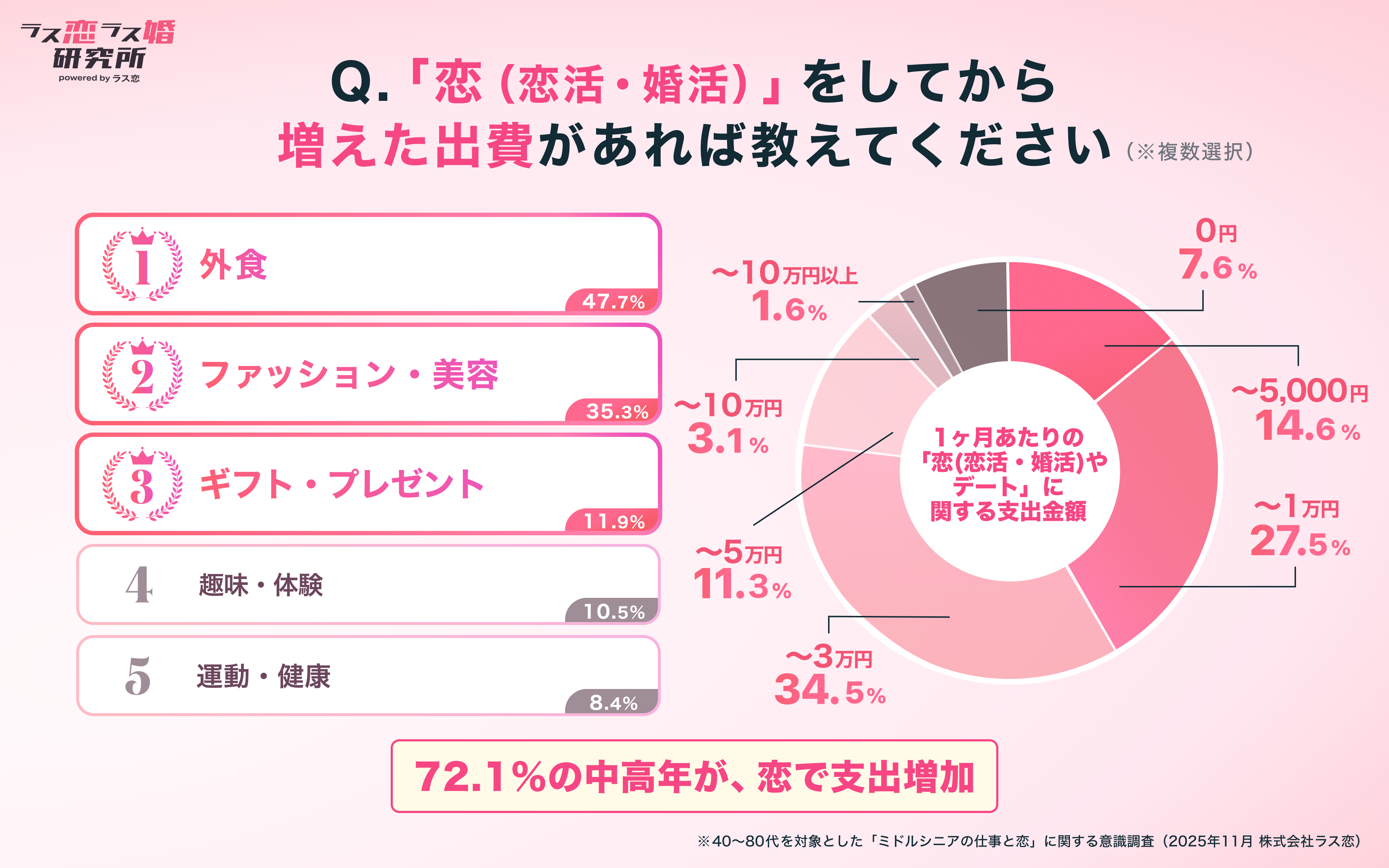 - 恋活をきっかけに外食・美容などでの支出が増えた人が72.1%