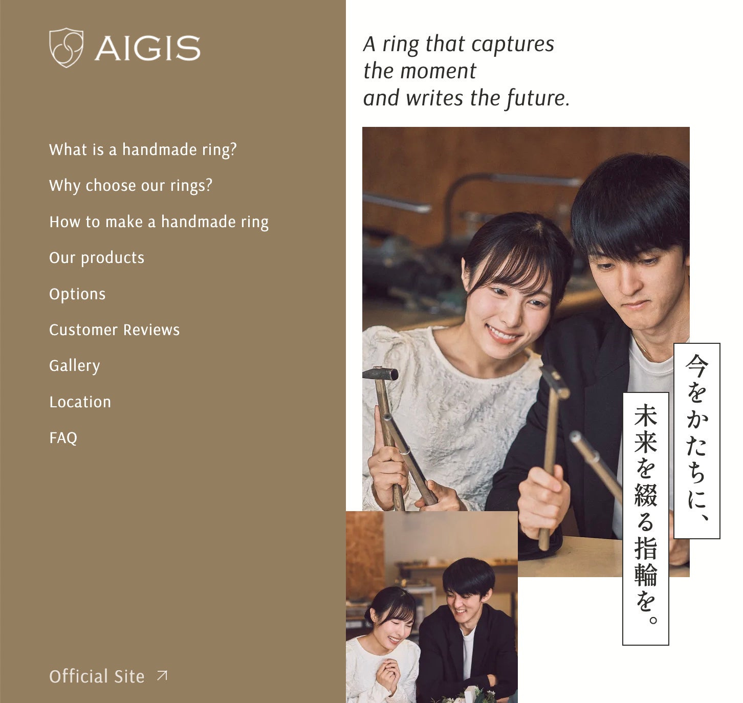 英語版LP:https://aigis-ring.com/en/couple-rings/