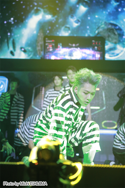 「Block Bはアップテンポの曲だけじゃなくて、優しくて甘い曲も似合ってますよね?」とビボムが自信をのぞかせた『珍しい女』ではバラの花を客席に投げ入れキュートな姿を見せたり、ポップな『HER』でイッキに盛り上げたり、中盤はアップとダウンを交互に配してBlock Bの音楽の幅の広さを見せつけた。