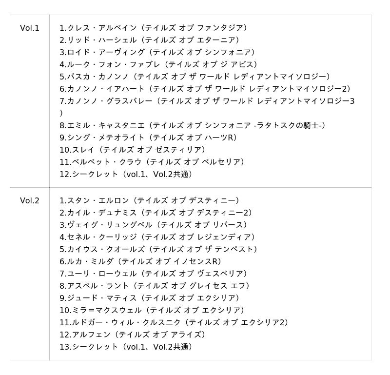 TALES OF(TM)Series & (C)Bandai Namco Entertainment Inc. (C)いのまたむつみ (C)藤島康介