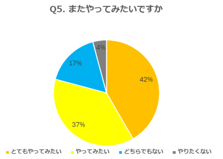 - 【継続意欲】 79%が「またやってみたい」と回答