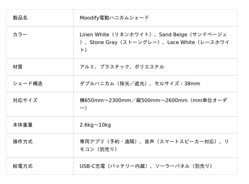 Moodifyは、「様々な時に寄り添う空間を創造する」を目指して設立された、日本発のライフスタイルブランドです。高機能で、おしゃれで、それでいて誰にでも手が届く「機能・デザイン・価格」のバランスにこだわるため、企画・設計・販売まで一貫して自社で手がけております。第1弾プロダクトとして開発した「電動ハニカムシェード」を皮切りに、みなさまの日常を少し心地よくする「空間づくり」を叶えてまいります。