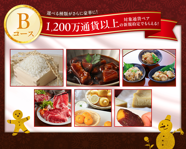 ▼Bコース:1,200万通貨以上のお取引をされたお客さまが対象