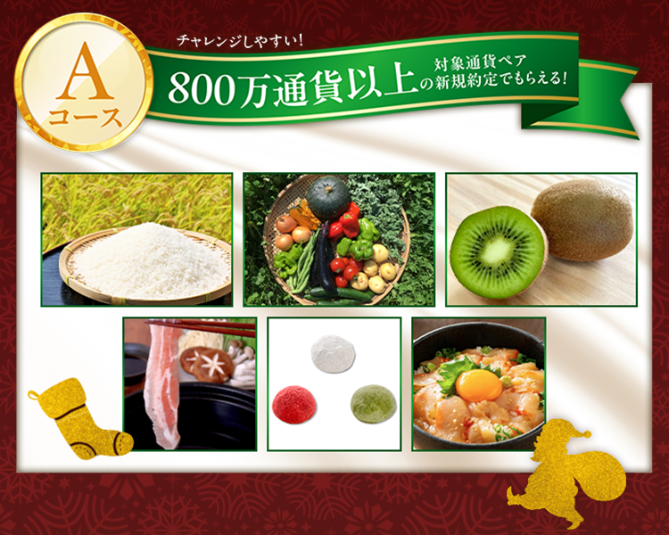 ▼Aコース:800万通貨以上、1,200万通貨未満のお取引をされたお客さまが対象