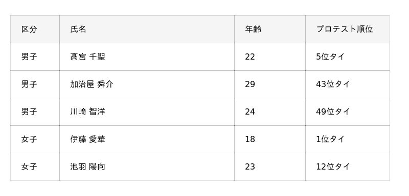 【参考】2025年のプロテストに合格した第1回大会参加者