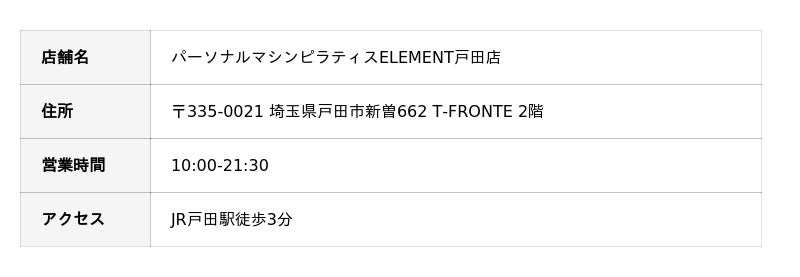 この度、戸田エリアで初となる通い放題のマシンピラティスジムをオープンすることとなりました。マシンピラティスを通じて、お客様の「運動の習慣化」の定着のための支援に努めてまいります。一人ではできなかった『運動の習慣化』『身体が変わっていくダイエット体験』を、ELEMENTでは実感いただけるでしょう。