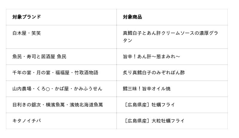 *対象商品は期間限定メニューのため、時期により対象商品が変更となります。