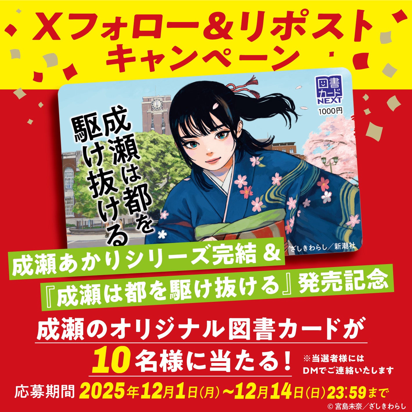 成瀬の図書カードが当たるXフォロー&リポストキャンペーン実施中!