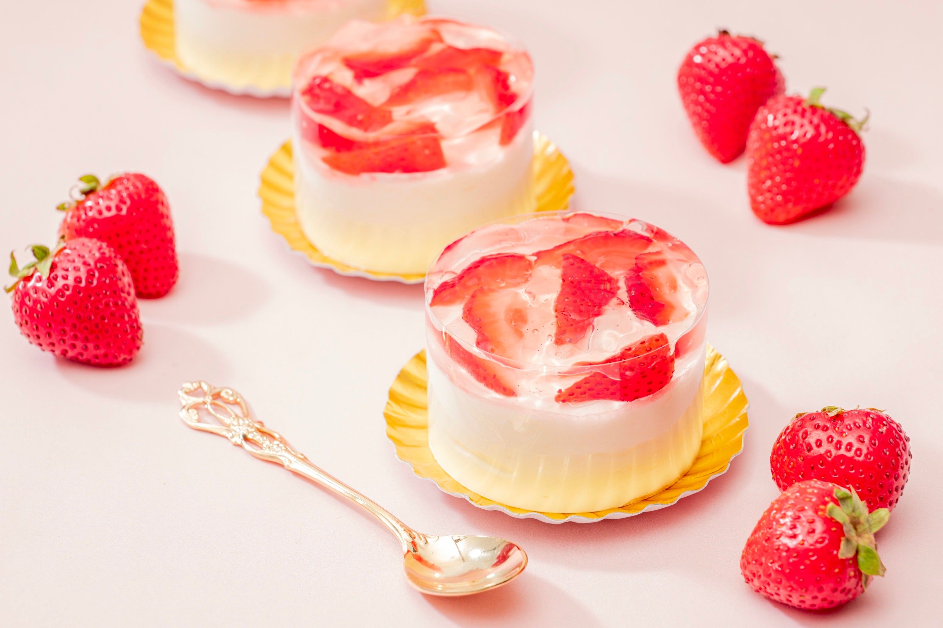 ナコッタに、スポンジとふんわり甘いディプロマットクリーム※1、爽やかな苺ゼリーを重