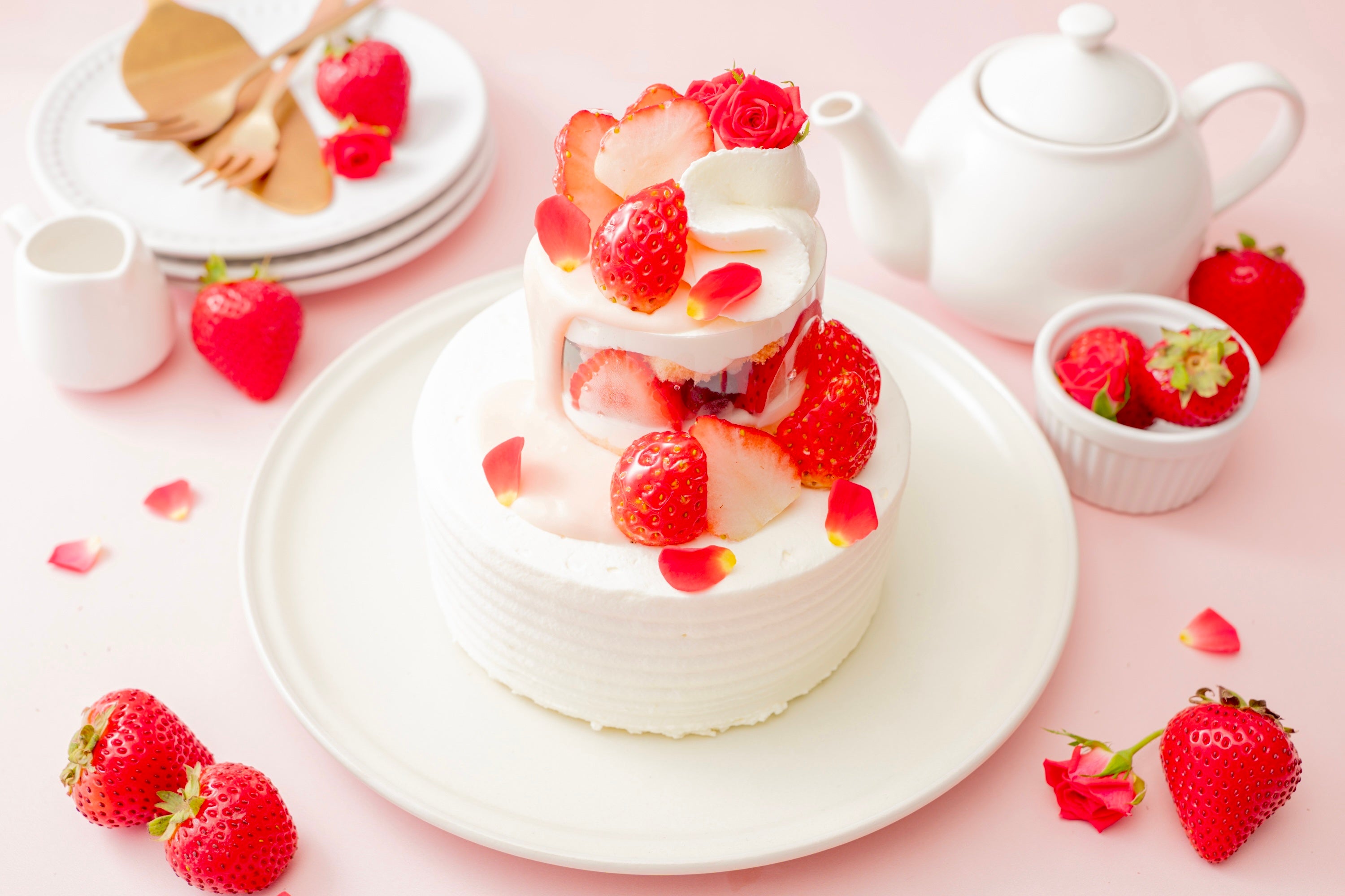役にもぴったり。旬の苺を心ゆくまで楽しめる、この季節ならではの2段ケーキです。