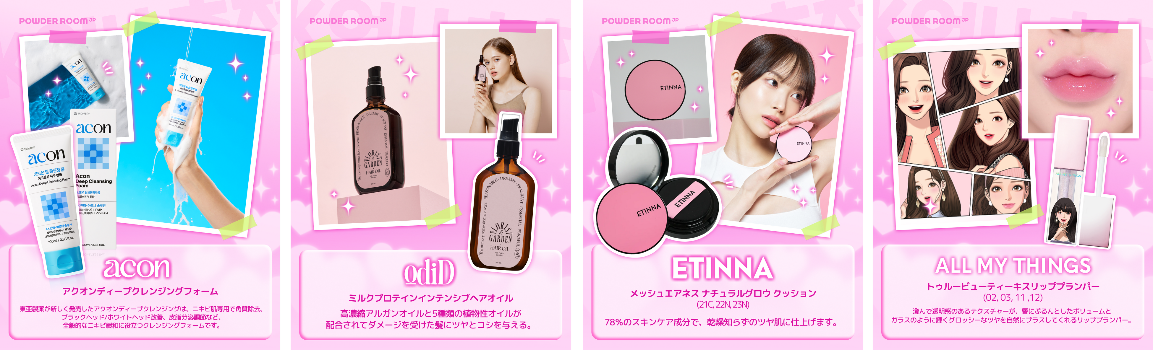 さらに、参加ブランドには「エディターズセレクト エンブレム」が付与され、パウダールームJP公式SNSでK-ビューティー代表製品として紹介されるなど、プロモーション効果も期待できます。