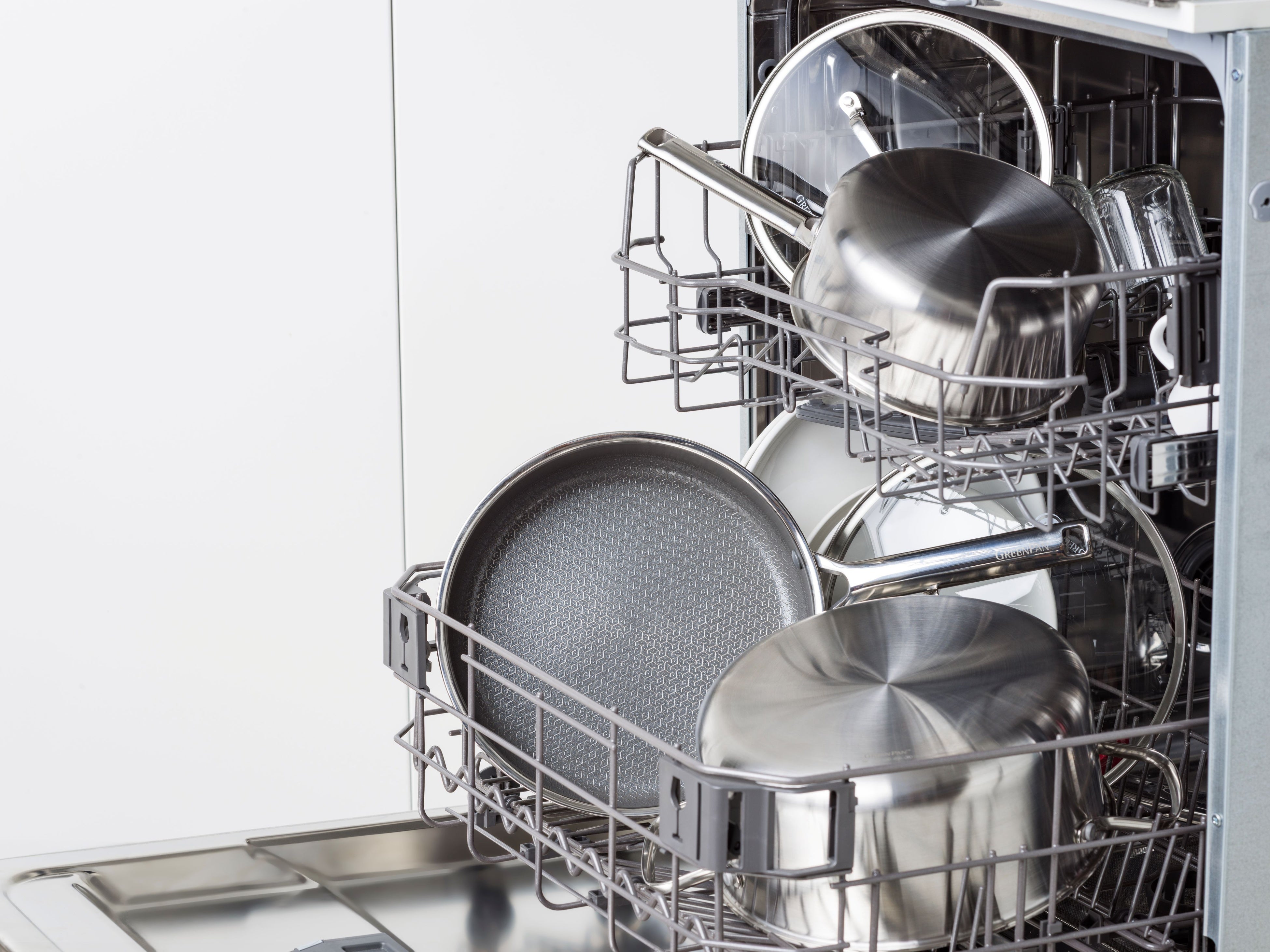 外面には、キッチン空間を上質に演出する美しいミラー仕上げのステンレスを採用しました。 その美しさと共に、実用性も徹底的に追求。人間工学に基づいたステンレスハンドルは熱くなりにくく、握りやすい設計で、コンロからオーブンへの移動もスムーズです。さらに、フチ部分はコーティングを施さないことで「欠け(チッピング)」を防ぐなど、長く愛用するための機能美が細部に宿っています。