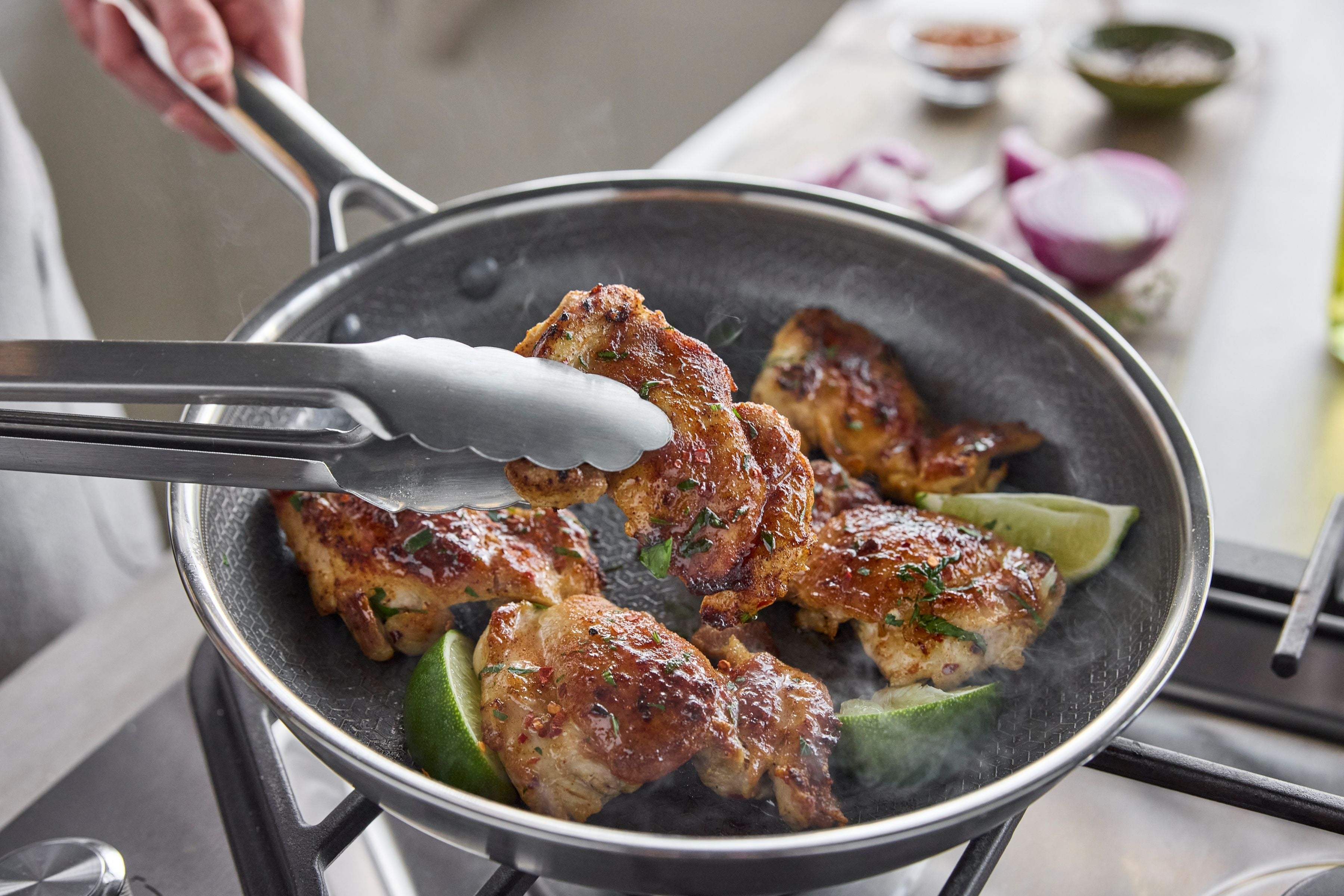 ボディは厚さ2.2mmの全面3層構造(ステンレス/アルミ/ステンレス)を採用 。 素早く熱を伝えるアルミコアをステンレスで挟み込むことで、底面だけでなく側面までムラなく熱が行き渡り、弱火から中火でも食材の芯までしっかり火を通します 。もちろんIHを含む全ての熱源に対応します 。
