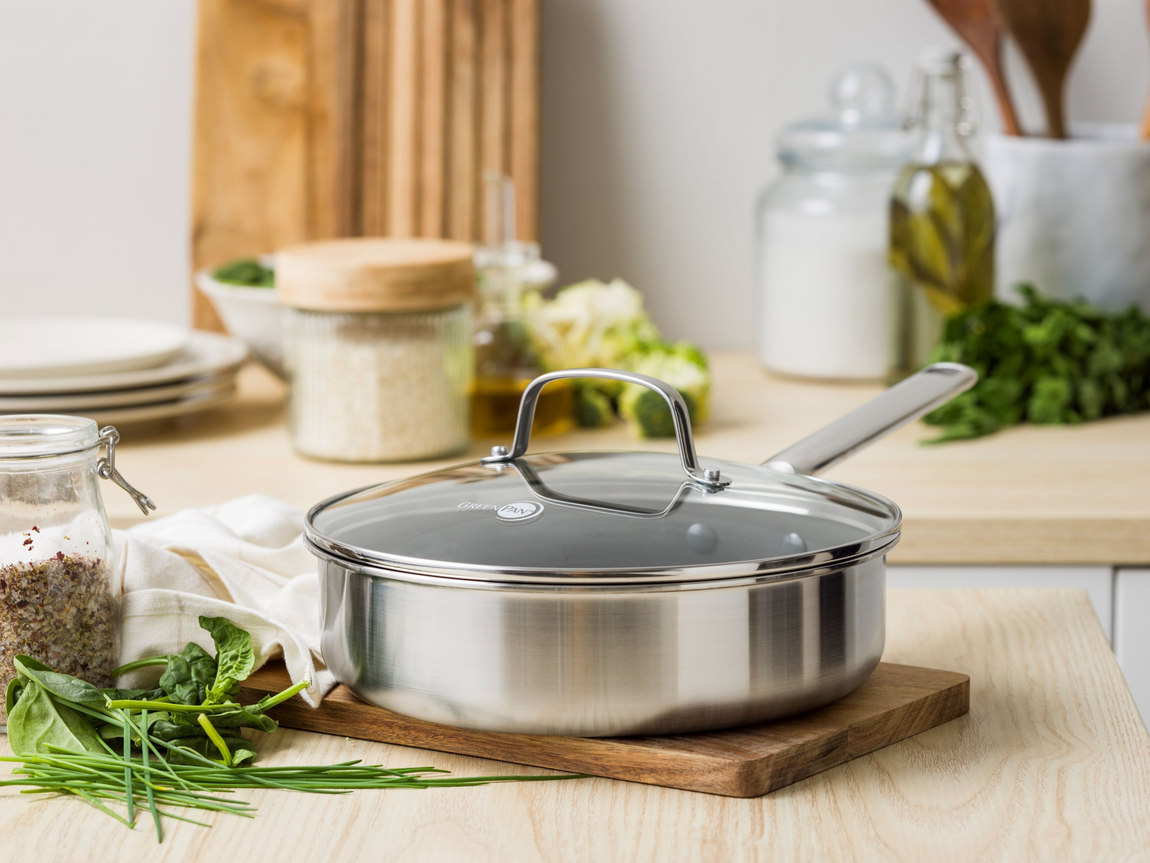 2007年の発表以来、PFASを使わないノンスティック調理器具の開発・販売に取り組んでいるベルギーのブランド「グリーンパン」。「APEX」はステンレスの耐久性とセラミックのノンスティック性能を融合させた、グリーンパンの最先端コレクションです。