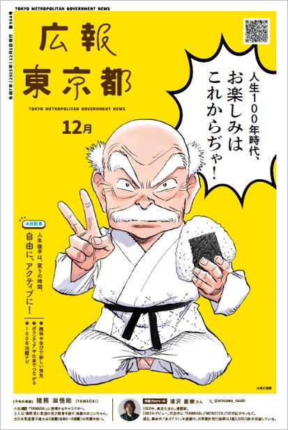 東京都では、都政や都民生活に必要な情報を伝えるため、広報紙「広報東京都」を毎月1日に発行しています。12月号は、人生100年時代と言われる今、毎日を心豊かに自分らしく過ごすためのヒントとして、東京都が行っているさまざまな施策をご紹介しています。趣味や健康づくり、新たな学びの場、地域活動、ボランティアなどの最新情報の入手方法や、シニアの方を対象としたイベントなど、情報が満載。今号は、人気漫画家の浦沢直樹先生の描き下ろしの表紙が目印です。ぜひ、お手に取ってお読みください。