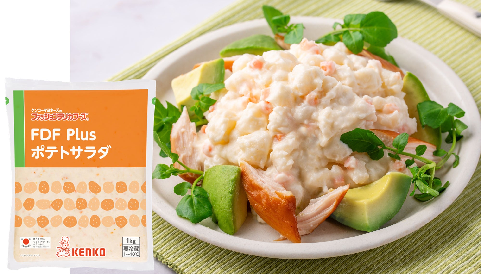 FDF Plus(R)ポテトサラダ10mmの角切りタイプとつぶしタイプのばれいしょをバランスよくあわせ、角切りのにんじんとたまねぎを加えました。他の食材ともあわせやすくクセのないしっかりとした味わいに仕上げています。美味しさはそのままに製造日+90日の賞味期間です。