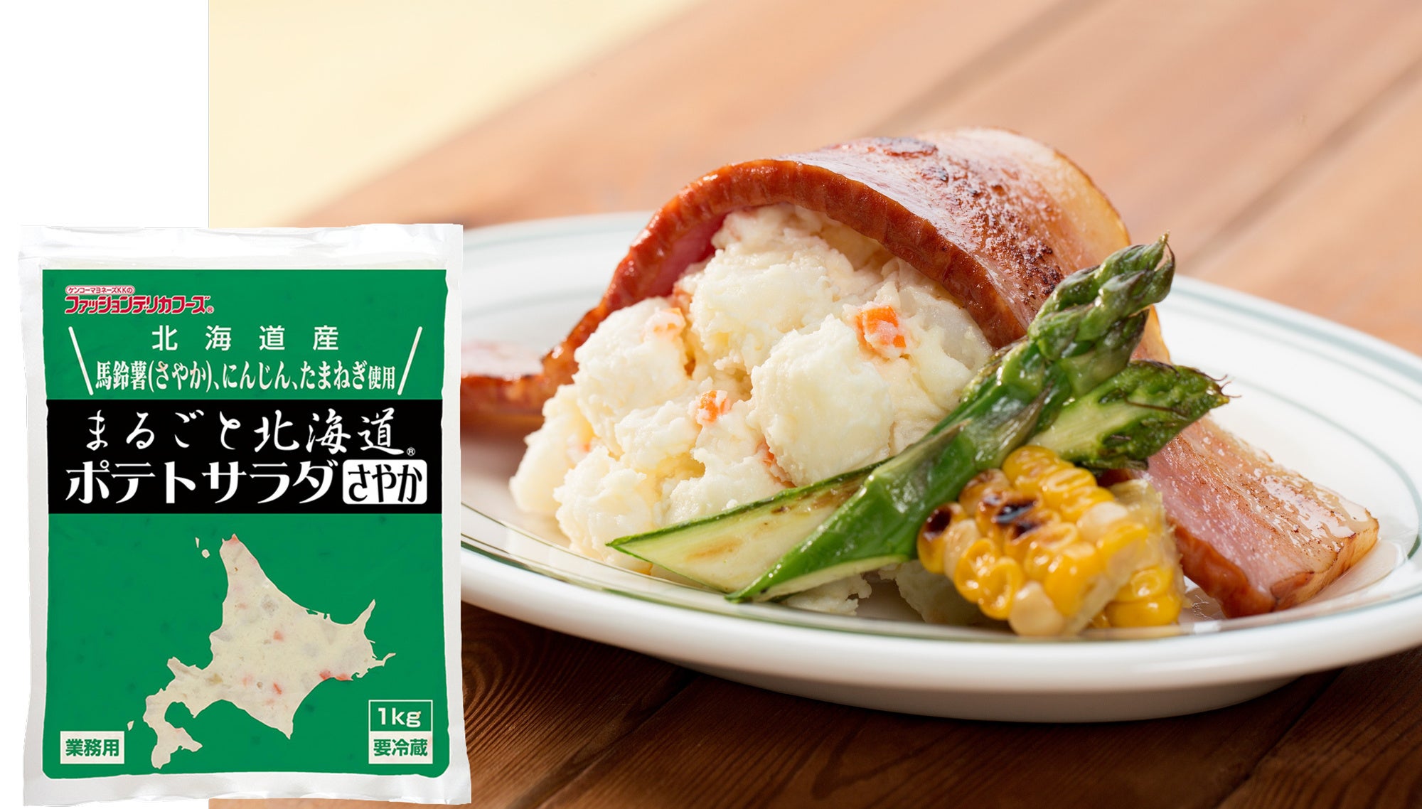 対象商品には、産地にこだわり素材の味を楽しめる『まるごと北海道(R)ポテトサラダ さやか』をはじめとした業務用のお客様から人気の上位10品をピックアップしました。1点からでもお安くご購入いただけますので、この機会にぜひお試しください。