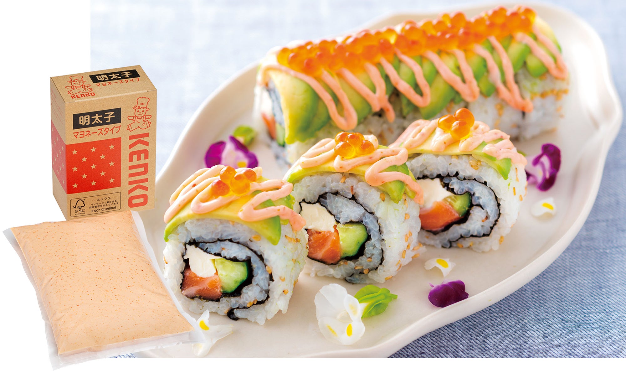 明太子マヨネーズタイプ明太子の旨味とピリッとした辛味の調和を楽しめます。鮮やかなピンクの色合いがメニューを華やかに導き、焼いても崩れずきれいな仕上がりです。程よい粘度で線引きや和え物にも活躍します。