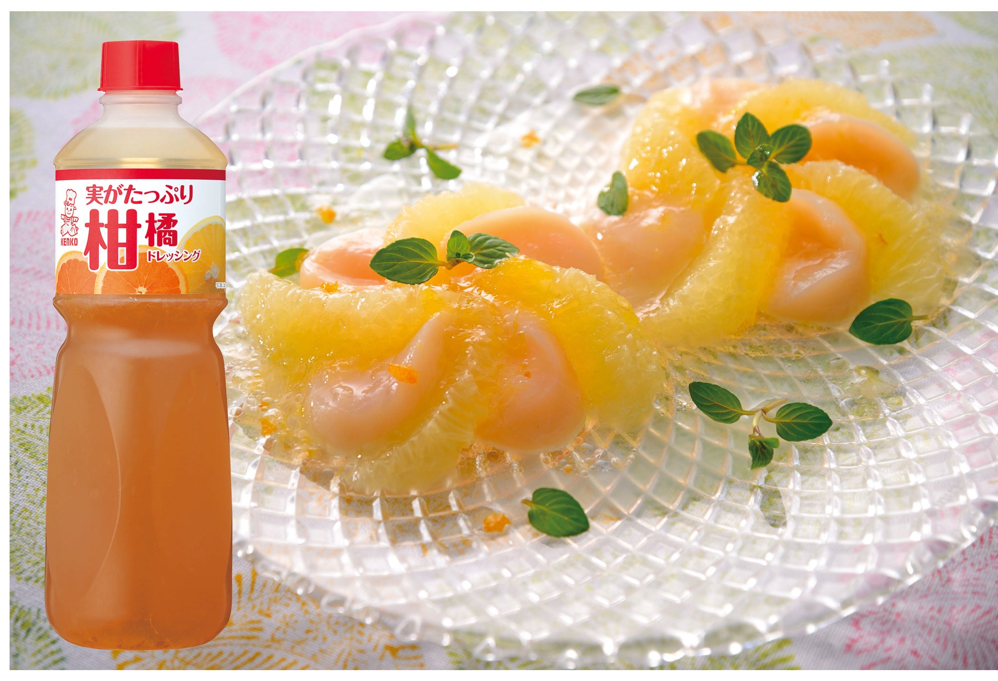 実がたっぷり柑橘ドレッシンググレープフルーツ・アロエ・オレンジ・ゆずのつぶつぶ感と鮮やかな色合いが楽しいフルーティーなドレッシングです。生野菜サラダはもちろん、魚介類のカルパッチョやスティック野菜のピクルスなど、幅広くお使いいただけます。