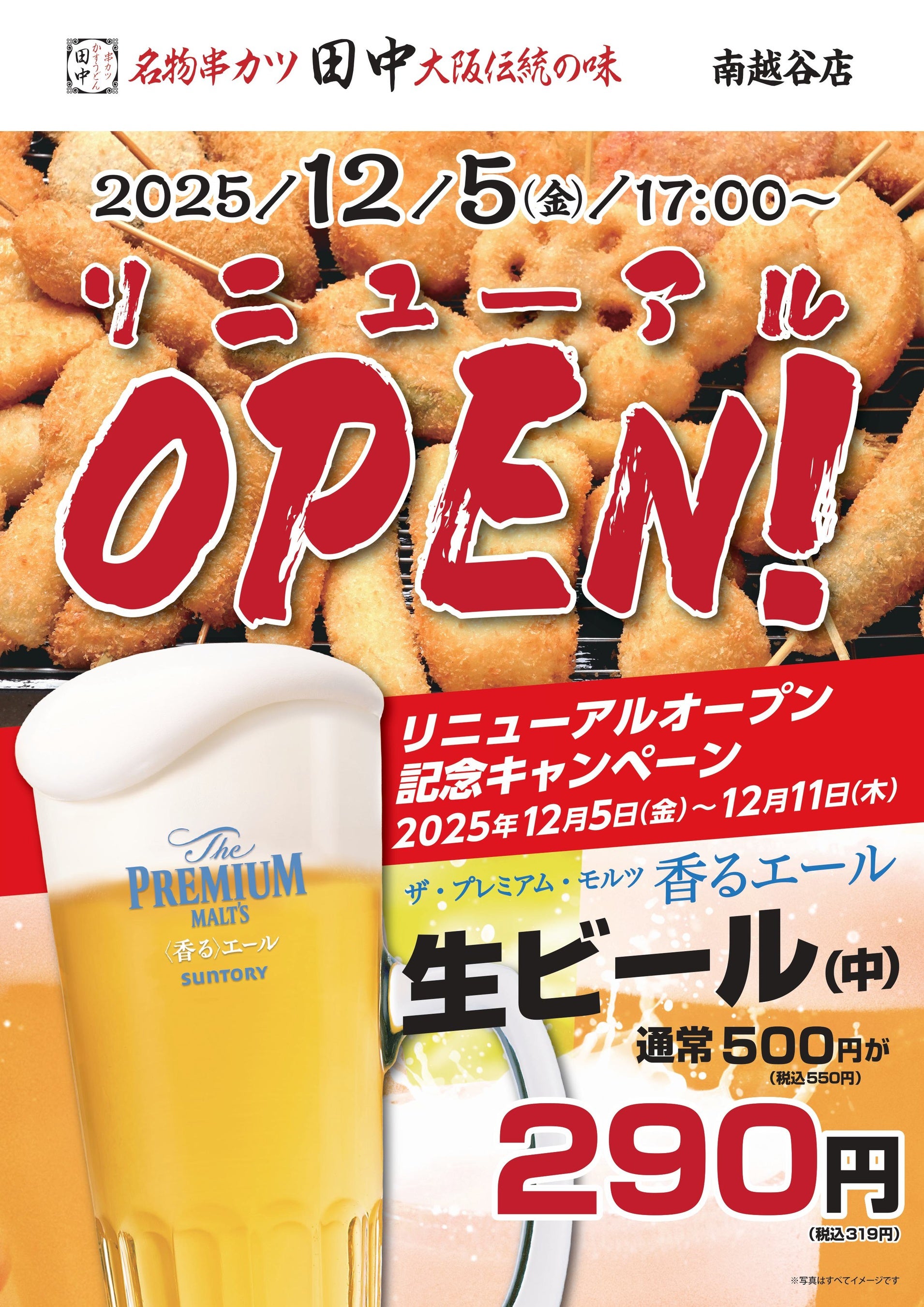 「“楽しい”でつながる世界をつくる」をミッションとする株式会社ファイブグループ(本社:東京都武蔵野市、代表取締役社長:坂本憲史)は、2025年12月5日(金)に「串カツ田中 南越谷店」をリニューアルオープンいたします。