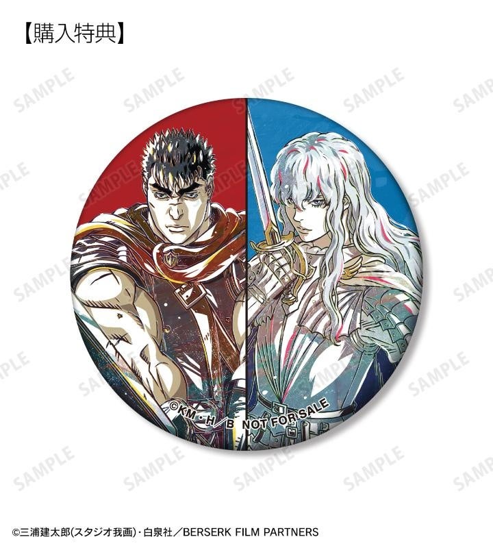 ガッツ、グリフィス、ジュドー、フェムトのイラストを新たなタッチで魅力的に表現し、メタリック仕様の缶バッジに仕上げました。