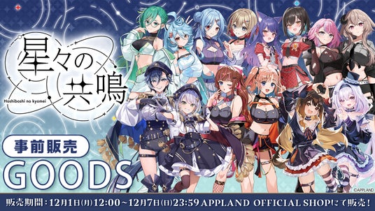株式会社アップランド(本社:東京都世田谷区、以下「当社」)が運営する「.LIVE」・「ぶいぱい」メンバーによる音楽LIVE『星々の共鳴』、『花京院ちえり 2ndソロライブ ふぁんしーふぁんきーぱれーど』の描き下ろしグッズをAPPLAND OFFICIAL SHOPにて販売することをお知らせします。